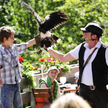Samen met de valkenier en de indrukwekkende adelaar neem je de stoeltjeslift naar Sareis. Daarvandaan leidt een ontspannen wandelpad naar beneden in de vallei terwijl je je verwondert over de adembenemende vliegkunsten van de adelaar.