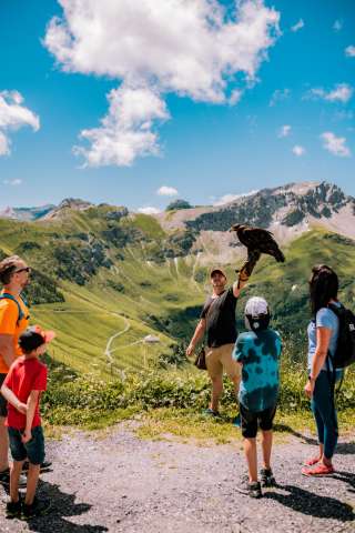 Samen met de valkenier en de indrukwekkende adelaar neem je de stoeltjeslift naar Sareis. Daarvandaan leidt een ontspannen wandelpad naar beneden in de vallei terwijl je je verwondert over de adembenemende vliegkunsten van de adelaar.