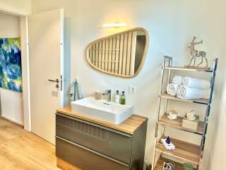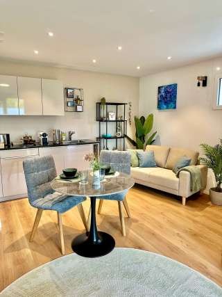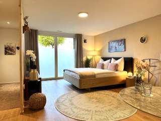De Alpenglanz Deluxe Studio in Schaan biedt 43 m² modern wooncomfort voor één tot twee personen. De studio met aparte ingang heeft een stijlvol ontwerp, liefdevolle aandacht voor detail en een rustige locatie aan de voet van de Drei-Schwestern bergen.