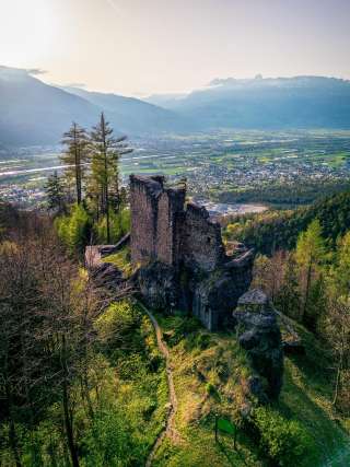 Kasteel Schalun, ook bekend als Wildschloss kasteel, bereik je vanuit Vaduz in ongeveer een uur over een gestaag stijgend pad door het bos. Onderweg kom je ook langs het nieuwe uitzichtsplatform. Vanaf het kasteel heb je een prachtig uitzicht over de Rijnvallei.