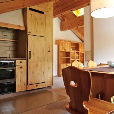De vakantiewoning bevindt zich onder de gezellige en traditionele dakbalken. De grote flat heeft twee tweepersoonskamers en een kamer met een tweepersoonsbed en een stapelbed. Er staan twee banken in de gezellige woonkamer, waarvan er één geschikt is om te slapen. De keuken is uitgerust met een grote tafel en er is een badkamer met douche en een apart toilet. Het appartement heeft ook een balkon.