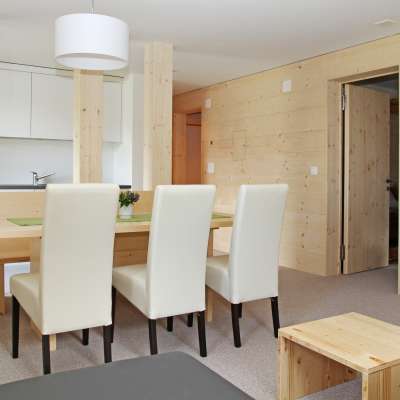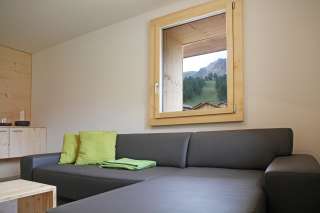 Het appartement heeft een tweepersoonskamer en een kamer met een tweepersoonsbed en een stapelbed, waardoor het ideaal is voor gezinnen tot 6 personen. Het appartement heeft een ruime woon/eetkamer, een grote badkamer met wc en douche, een garderobe, een balkon en een zithoek. Het appartement is ingericht in een moderne alpine stijl en creëert een gezellige vakantiesfeer. Een ruime berging voor ski's, andere sportuitrusting en kleding biedt een praktische extra.