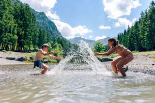 De Gänglesee meer doorkruist door de Valünerbach. Direct daarnaast Steg het stuwmeer Steg , waarvoor de Gänglesee meer slibvanger fungeert. Barbecueplaatsen nodigen uit tot een gezellig praatje in de avond of een gezamenlijke lunch. Op warme zomerdagen kunnen de kinderen in het vrij koele water pootjebaden.