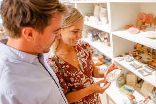 Het geselecteerde assortiment varieert van schrijfwaren, boeken, kinderkleding en lokale levensmiddelen tot exquise artikelen voor in de keuken of in de vrije tijd. Alle producten hebben één ding gemeen: ze zijn ontwikkeld met aandacht voor detail en zorgvuldig geselecteerd voor de klant. Een stukje thuisgevoel als cadeau voor familieleden, vrienden, kennissen, collega's uit binnen- en buitenland of voor jezelf.