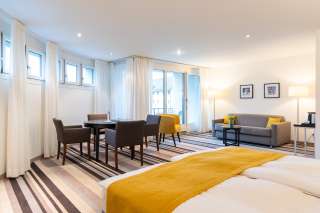 De standaardkamers in het hoofdgebouw zijn ingericht in een alpine stijl en zijn geclassificeerd als 3-sterren. Het bijgebouw, met moderne 4-sterrenkamers en suites, ligt op een bijzonder rustige locatie. Gasten hebben ook gratis toegang tot het fitnesscentrum in het aangrenzende gebouw, dat is uitgerust met de nieuwste apparatuur.