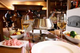 Het seizoensgebonden menu biedt regionale en internationale gerechten en traditionele fonduespecialiteiten.