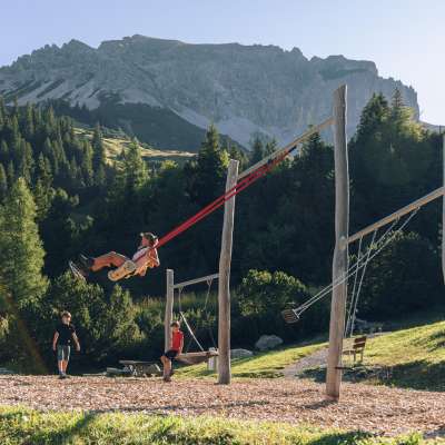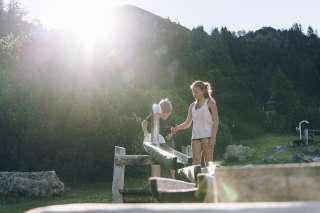Het speelpark in Malbun is de ideale voorbereiding voor de eerste pogingen van kinderen om te wandelen in bergachtig terrein. Op de klim- en evenwichtsinstallatie kunnen ze hun eerste veilige stappen en bewegingscoördinatie oefenen. De zachte vloer van houtsnippers is ook vergevingsgezind bij kleine uitglijders. Stations zoals het water- en modderparcours nodigen kinderen uit om vrij te spelen met beekjes, poelen enz. in de schaduw van de bomen.