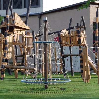 De speeltuin bij de gemeentelijke school in Ruggell is ideaal voor oudere kinderen.