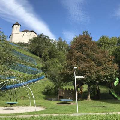 De speeltuin Wanne ligt direct onder burcht Gutenburg in de meest zuidelijke gemeente van Liechtenstein.