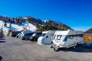 De 12 staanplaatsen bevinden zich op parkeerplaats P2. Er zijn veel verschillende aanbiedingen en activiteiten op het terrein. De grootte van de plaatsen is 5 x 8 meter elk. De hele parkeerplaats heeft een harde ondergrond met grind. In de winter is de parkeerplaats meestal bedekt met sneeuw.
